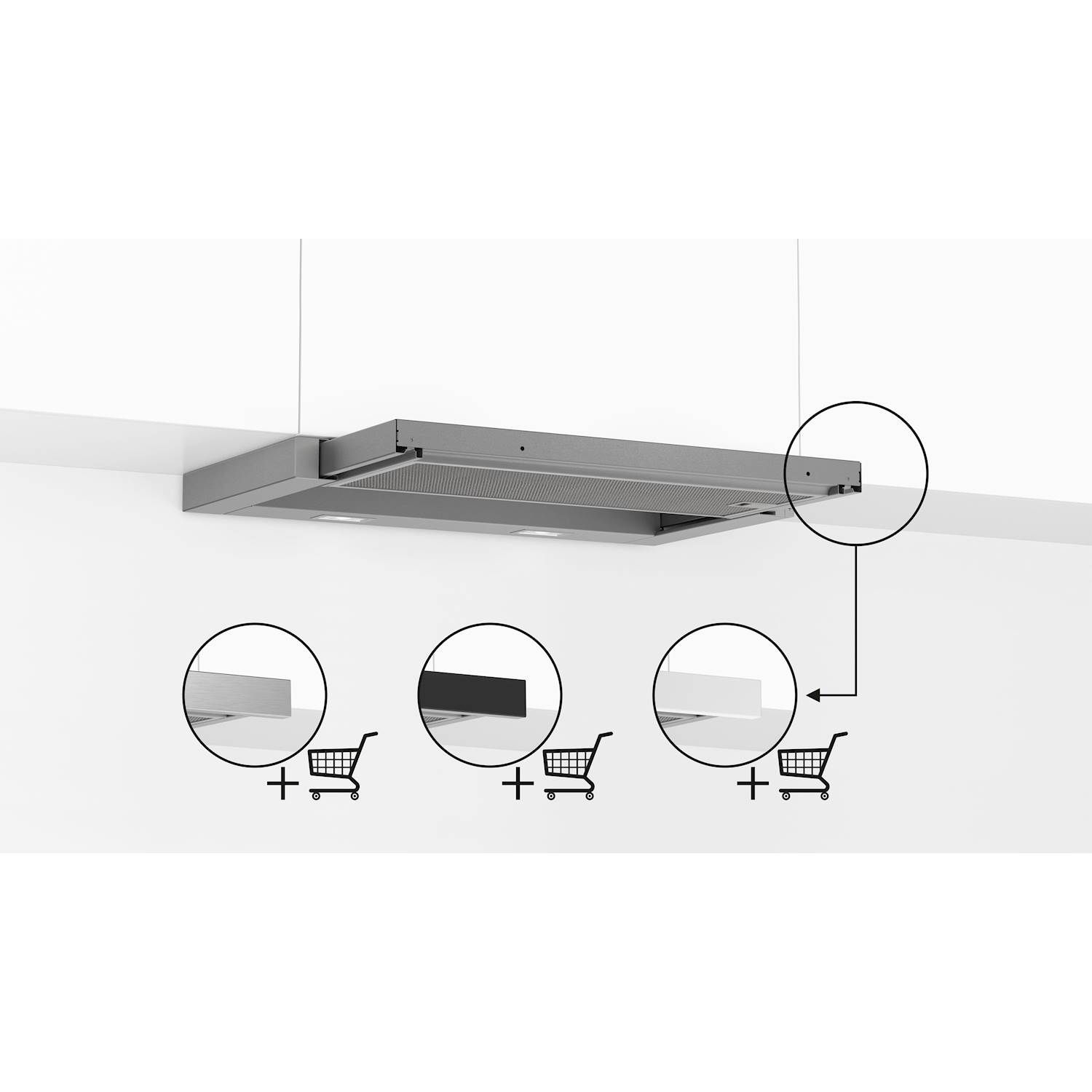 Skabsintegreret og udtrækbar emhætte fra Bosch til montering i 60 cm overskab Læs hele beskrivelsen