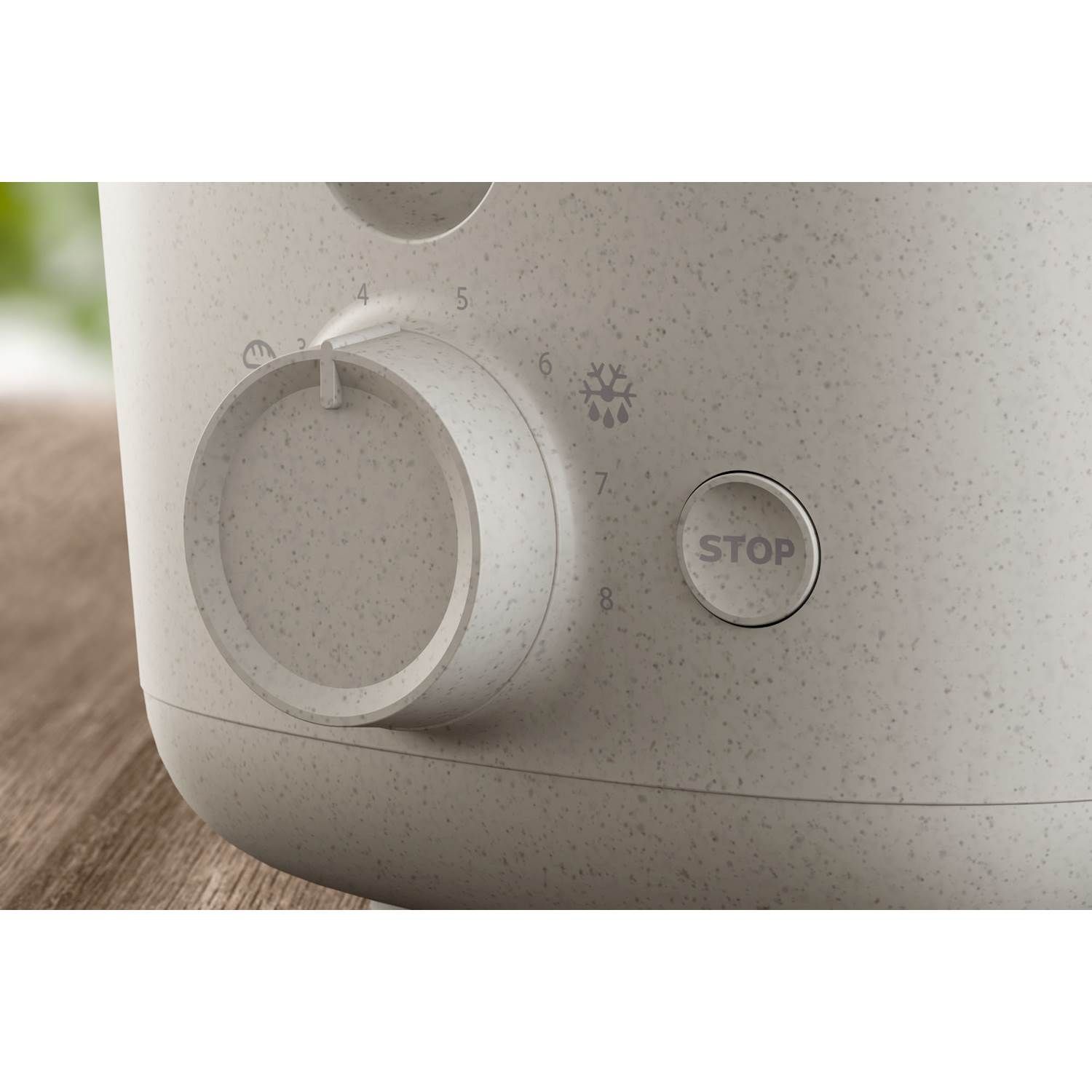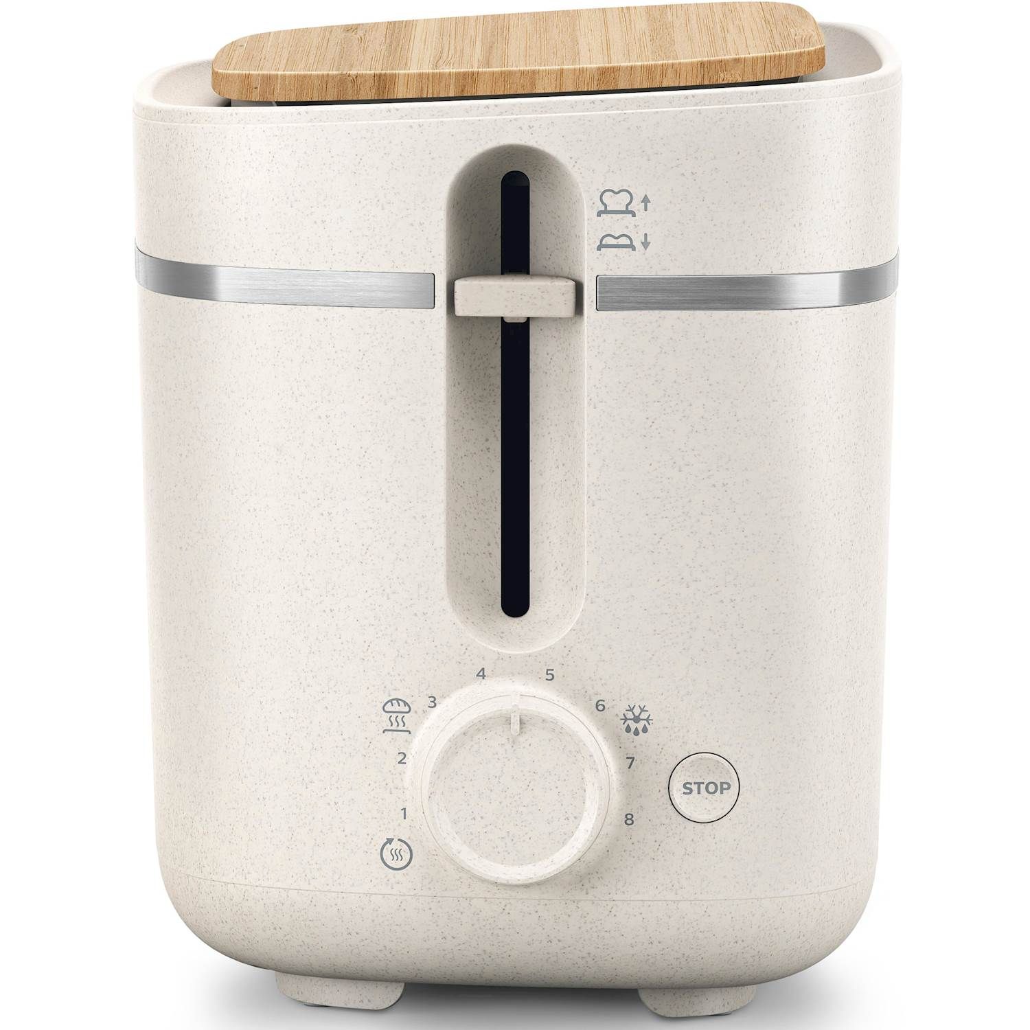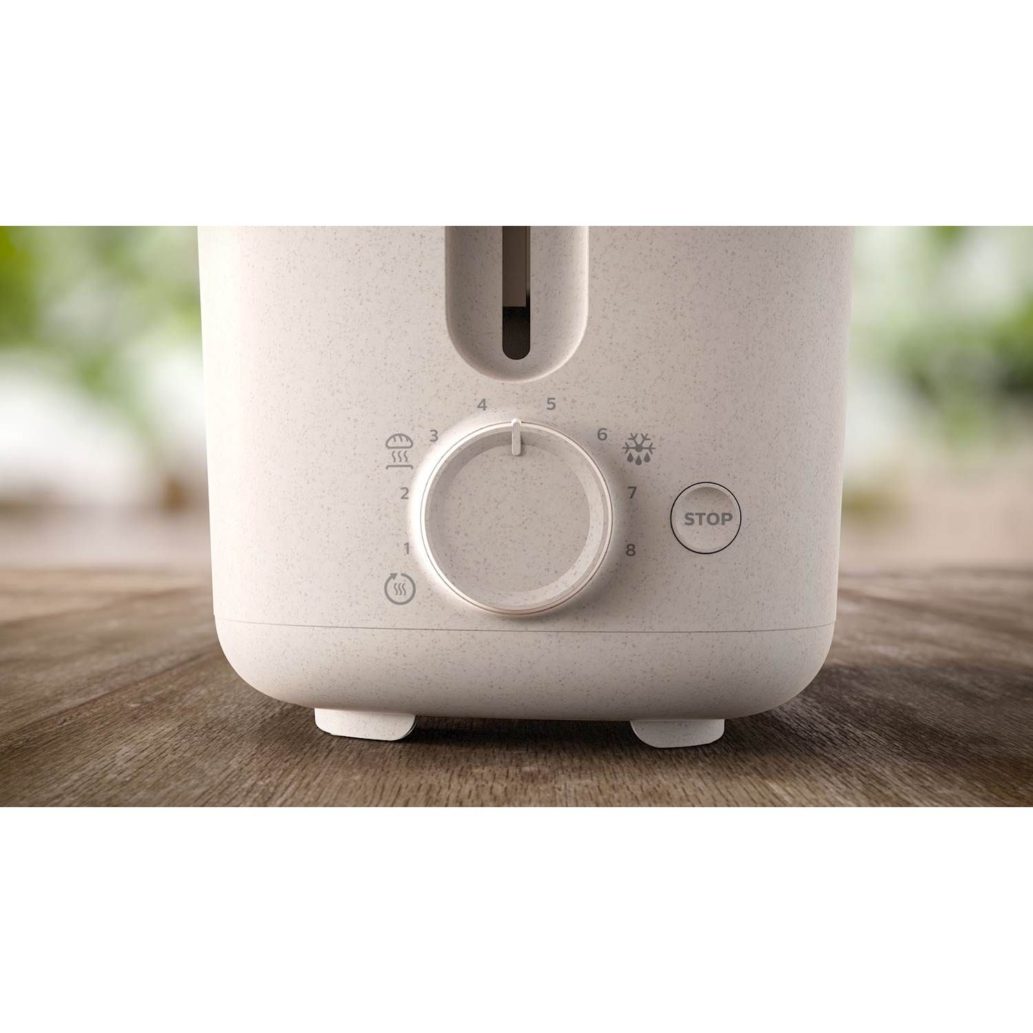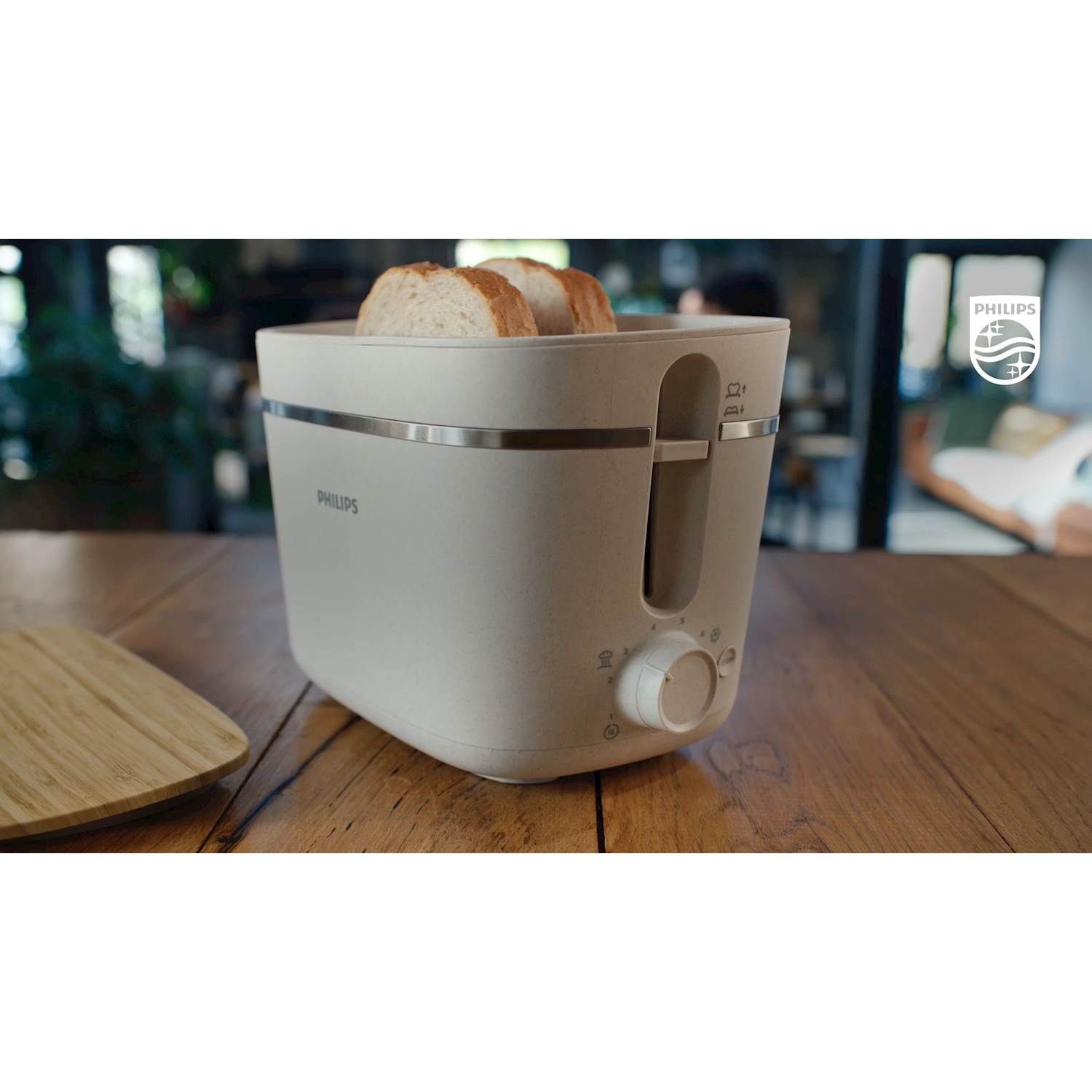 Bæredygtigt designet med 100 % biobaseret plastik for at reducere CO2-fodaftrykket. Brødristeren er lavet af biologiske og vedvarende ressourcer, såsom solsikkeolie. Brugt olie, der er tilbage fra madlavningen, indsamles og genbruges gennem en miljøvenlig proces for at gøre den velegnet til kontakt med fødevarer.