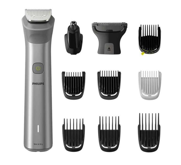 Philips MG5930/15 er en alsidig all‑in‑one trimmer, der samler din personlige pleje i ét værktøj. Med i alt elleve redskaber kan du definere stubbe, forme fuldskæg, trimme håret og pleje kroppen under halslinjen. Det robuste metalhoved leverer rene kanter og præcise linjer, mens næse‑ og øretrimmeren komfortabelt fjerner uønskede hår for et velplejet udtryk hver dag.