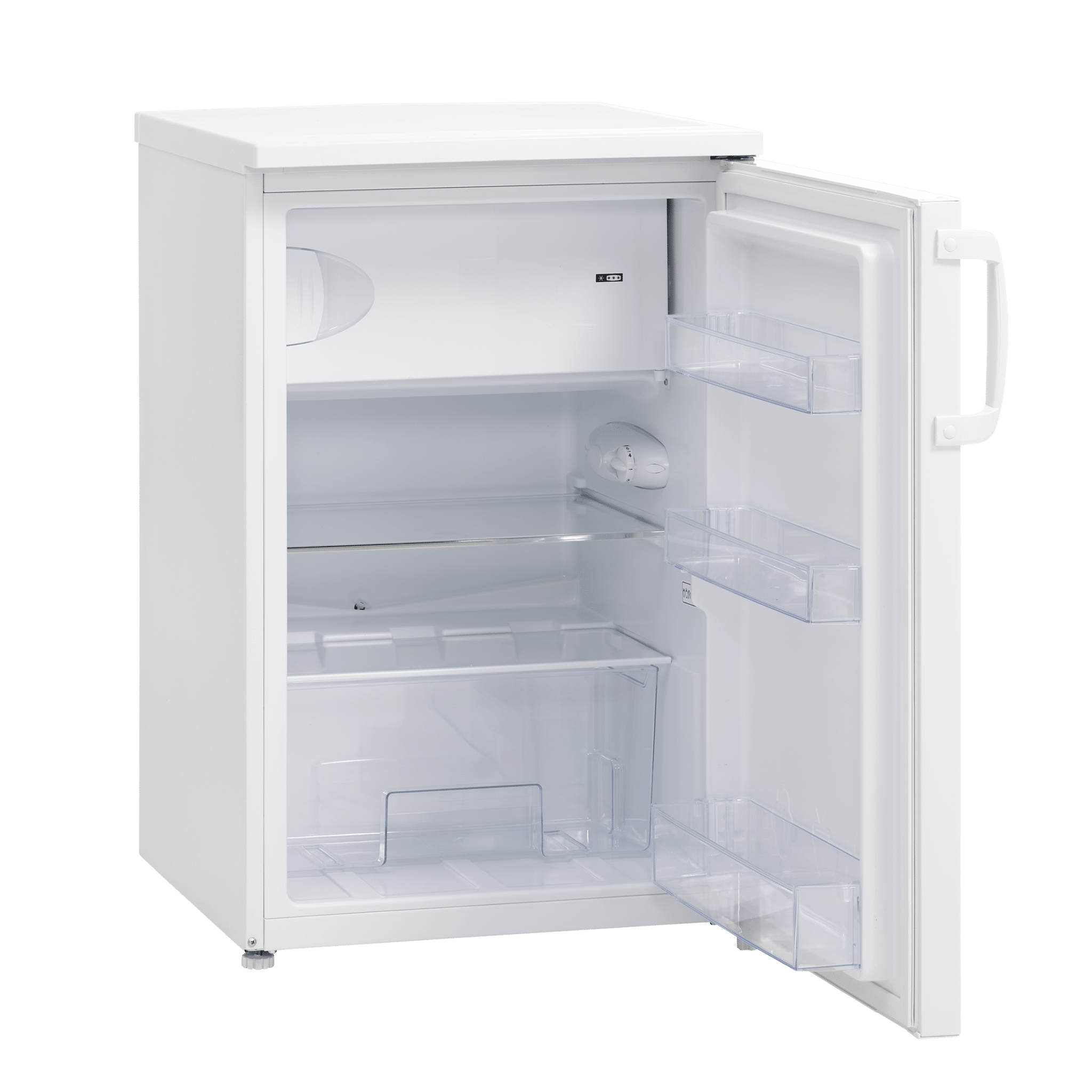 Køleskabet med fryseboks leveres med højre hængslet dør men kan vendes så det bliver venstre hængt. Dermed er det fleksibelt og nemt at placere skabet i de fleste rum. Køleskabet indeholder 3 dørhylder heraf 1 maxi hylde til 2L kartoner og flasker. 1+1 brudsikre glashylder af SafetyGlass. Det betyder, at de er yderst holdbare og brudsikre, skulle uheldet alligevel være ude og der tabes en hylde på gulvet, så splintres den ikke i skarpe stykker.